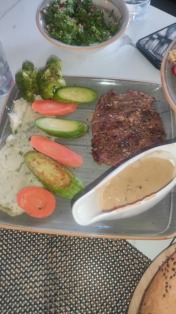 One of the standout features of this restaurant is its signature menu items. Whether you're a fan of savory or sweet dishes, there's something here to satisfy every craving. Start off with a refreshing serving of تبولة or Fattoush, two classic Middle Eastern salads that are both light and flavorful, perfect for those looking for a fresh, vibrant dish. If you're in the mood for something heartier, the Steak is a must-try-cooked to perfection and paired with delicious sides that will leave you wanting more.